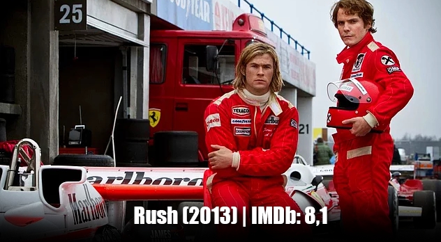 14 - Rush (2013) | IMDb: 8,11976 yılında gerçekleşen Alman Grand Prix yarışında Niki Lauda'nın kullandığı Ferrari ikinci round'un sonunda yaşadığı bir sorun nedeniyle yarış dışı kalır ve birincilik ezeli rakibi James Hunt'a gider. Bu kaza sonrasında Lauda yaralanır; aradan geçen altı haftanın ardından olağan hırsı ve öfkesiyle pistlere geri döner. İki yarışçı arasında italyan Grand Prix'i ile başlayan mücadele diğer yarışlarda katlanarak devam eder. Hedef dünya şampiyonluğudur... Avusturyalı F1 yarışçısı Niki Lauda ve İngiliz rakibi James Hunt arasındaki dillere destan rekabeti konu alan film, Formula 1'in altın döneminde, 1970'lerde geçiyor. A Beautiful Mind filminin Oscar ödüllü yönetmeni Ron Howard'ın yönettiği filmin başrollerini Daniel Brühl ve Chris Hemsworth paylaşıyor.