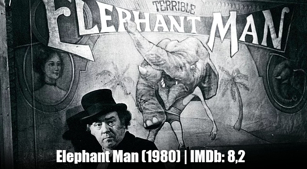 10 - Elephant Man (1980) | IMDb: 8,21880’ler Londra’sındayız. Şehrin sokaklarından süzülen kasvet ve karamsarlık, arka sokaklarda olup bitenleri belli eder nitelikte. Doktor Treves, isli sokaklarda gezindiği esnada gezici bir sirke rastlıyor. Önündeki kalabalıktan anlaşıldığı üzere içeride normal olmayan bir gösteri var... Ve bu normal olmayan gösterinin kahramanı, doğuştan engelli olan John Merrick. Annesi Merrick’e hamileyken bir fil tarafından saldırıya uğradığı söylenir bu sirkte. Doktor Treves ise hızlı bir hamleyle tedavi altına almak ister bu fil görünümlü adamı ve istediği gibi de olur. Her haliyle ürkütücü olan fil adamın bu korkunç görünümünün altında, gönlünde yatanlar ise zamanla dökülmeye başlar. Gerçek bir yaşanmışlıktan beyaz perdeye uyarlanan filmin yönetmeni, sinemanın aykırı yönetmeni David Lynch imzalı. Lynch filmografisindeki gerçekçi duruşuyla sivrilen filmin başrollerinde başarılı oyunculuklarıyla Anthony Hopkins ve John Hurt var.