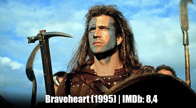 5 - Braveheart (1995) | IMDb: 8,4Yaşanan büyük acılar sonrası yeniden memleketi olan İskoçya’ya dönen William Wallace’ın asıl amacı çiftçilik yaparak sakin bir hayat sürmektir. Çocukluk aşkıyla karşılaştığında bunun onu dipsiz bir uçuruma iteceğinin farkında değildir. Bir gün İngiliz askerleri, William’ın çocukluk aşkı olan Murron’a tecavüz etmeye çabalarlar. William, onu kurtarır; ancak bu Murron’un ölümüne ve bir dönemin değişimine sebebiyet verecektir. Mel Gibson’un ünlü İskoç halk kahramanı William Wallace’ı hem canlandırdığı hem de yönettiği filmi kısa sürede bir fenomene dönüşmüştü.