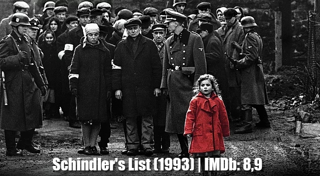 1 - Schindler's List (1993) | IMDb: 8,9Film, Oskar Schindler adlı bir Alman iş adamının 2. Dünya Savaşı zamanında Polonya’da kurduğu fabrikada Yahudi işçileri çalıştırması ve bu sayede 1100 Yahudi'nin hayatını kurtarmasını konu alıyor. Gerçek bir hayat hikayesinden uyarlanan film, ünlü yönetmen Steven Spielberg’in en önemli yapıtları arasında sayılan ve ona Oscar kazandıran bir yapımdır. Film, 1994 yılında 12 dalda Oscar’a aday olmuş ve 7 dalda ödül kazanmıştı. Filmin kazandığı Oscar’lar şöyle : En İyi Film, Yönetim, Kurgu, Sanat Yönetimi, Görüntü, Özgün Müzik ve Senaryo Uyarlaması.