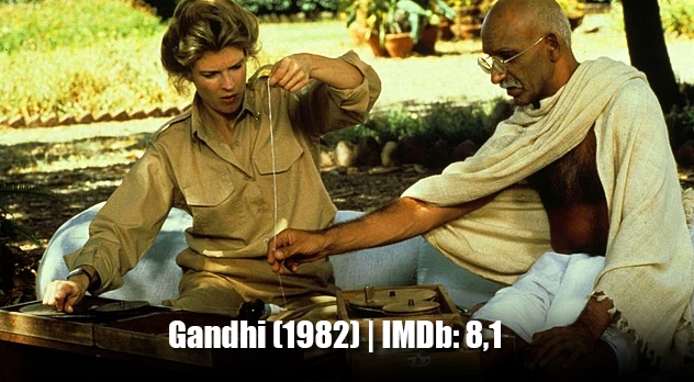 19 - Gandhi (1982) | IMDb: 8,11900'lü yılların başında, Hindistan'dayız... İngiliz sömürüsü altındaki ülke, esareti tüm iliklerinde hissetmekte, özgürlük kavramının hissettirdiklerini günden güne yitirmektedir. Bu dönem ortaya çıkan bir kişilik, epik bir tarih yazarak, insanlık tarihinin en önemli kahramanlarından biri haline gelecektir. Tüm zamanların en ilham verici kişiliklerinden biri olacak bu adam, Hindistan tarihinin en önemli kişiliği Mahatma Gandhi'den başkası değildir... Biyografi filmleri türünün en yetkin örneklerinden biri olan Gandhi, birçok sebepten dolayı etkisini asla yitirmeyecek, epik bir yapıttır. Akademi Ödülleri'nde sekiz dalda Oscar kazanan film, 300.000 kişiden oluşan, sinema tarihinin en kalabalık sahnesi rekorunu elinde bulunduran cenaze sahnesiyle hafızalara kazınmıştır.