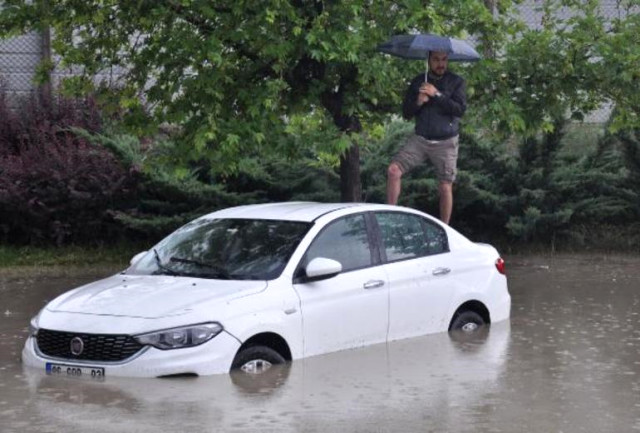 Ankara'da sağanak nedeniyle bazı noktalarda bir metreye ulaşan su birikintileri oluştu. Suyun içinden geçerken araçları arızalanan çok sayıda sürücü, otomobillerinde mahsur kaldı.