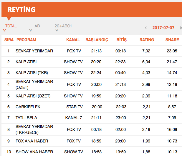 7 Temmuz 2017 Cuma reyting sonuçları!