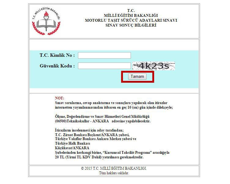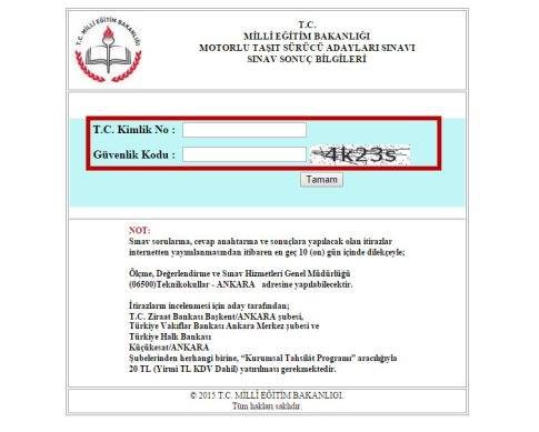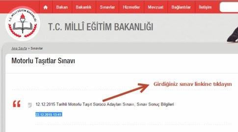 8 Ekim 2016 MEB Ehliyet Sınav Sonuçları sorgulama