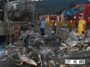 Alınan bilgiye göre, Ahmet Duran idaresindeki 01 VM 121 plakalı kamyon, sürücüsünün kimliği henüz belirlenemeyen 27 V 005 plakalı otomobille çarpıştı ve her iki araçta da yangın çıktı. Bu sırada kaza yapan kamyona, sürücülerinin kimliği belirlenemeyen 05 EZ 711 ve 01 R 6487 plakalı kamyonetler de arkadan çarptı.