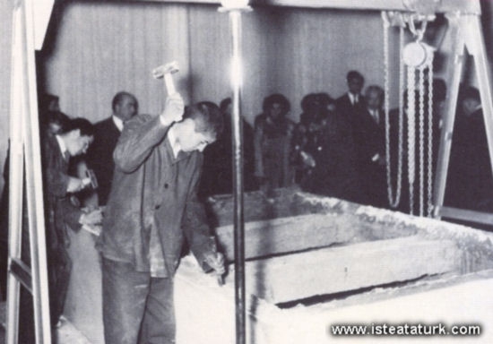 15 yıl sonra Anıtkabir'in tamamlanınca 4 Kasım 1953 günü bu betonlar kırılarak Atatürk'ün tabutu geçici kabrinden çıkartılmış, 9 Kasım 1953 gününe kadar yine mermer katafalka konmuştur.