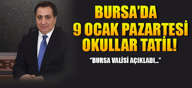 Bursa Valisi İzzettin Küçük Bursa'da ilk ve orta öğretim düzeyindeki okullara 9 ocak pazartesi gününü tatil olarak duyurdu.