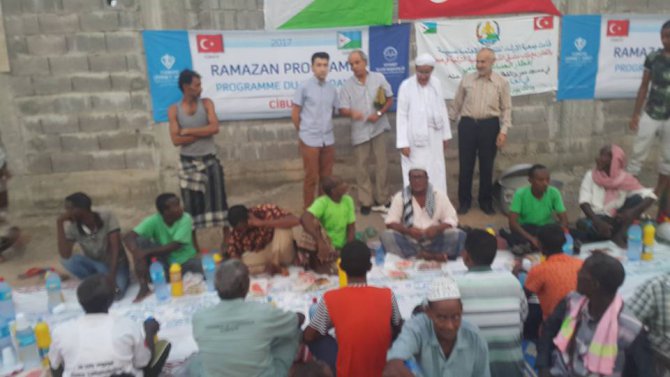 Türkiye Diyanet Vakfı'nin Cibuti Halkına ikram ettiği iftar sofraları Cibuti'nin saygideger alimi Emin Muhammed Omar'in ev sahipliginde Balbala mahallesinde bulunan Ömer Bin Hattab Camiinde Cibuti Büyükelcimiz Sadi Altinok Beyefendi'nin iştirakleri ile gerçekleştirildi.