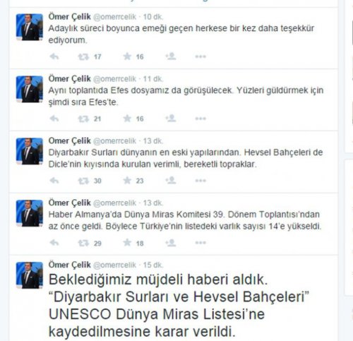 Diyarbakır'ın Kültür ve Turizm Yerleşimleri Artık UNESCO Dünya Miras Listesi’nde Konuyla ilgili İlk Müjdeyi veren Kültür ve Turizm Bakanı Ömer Çelik Twitter Hesabında Şu Mesajlara Yer Verdi