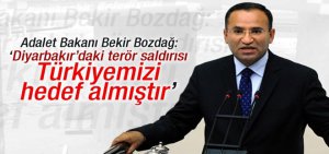 Terör saldırısını şiddetle ve nefretle kınadığını belirten Bozdağ, "Esasında dün Diyarbakır’da başlatılan terör saldırısı, sadece polisimizi hedef almamış, isabet eden kurşunlar sadece polisimizi şehit etmemiş, sadece Diyarbakır Baro Başkanı merhum Tahir Elçi'nin hayatını kaybetmesine neden olmamış, aynı zamanda Türkiyemizi hedef almıştır" dedi.