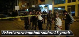 Diyarbakır'ın Kocaköy İlçesi'nde PKK'lılar askeri aracın geçişi sırasında yola tuzakladıkları bombayı uzaktan kumanda ile patlatılması sonucu 23 asker yaralandı.