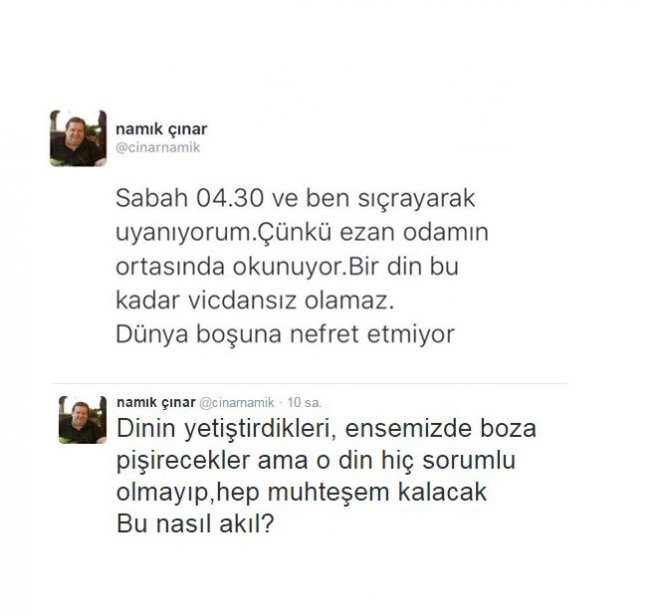 FETÖ tarafından finanse edilen tetikçi bir haber sitesinin yazarı Namık Çınar, Ramazan ayına sayılı saatler kala ezana ve İslam dinine hakaret etti