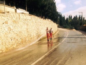 Temizlik çalışmaları için 8 araç ve 20’den fazla personel ile başlatıldığı belirtilerek, çalışmada cami bahçeleriyle mezarlık içi ve çevre yollarının basınçlı su ile yıkandığı belirtildi.