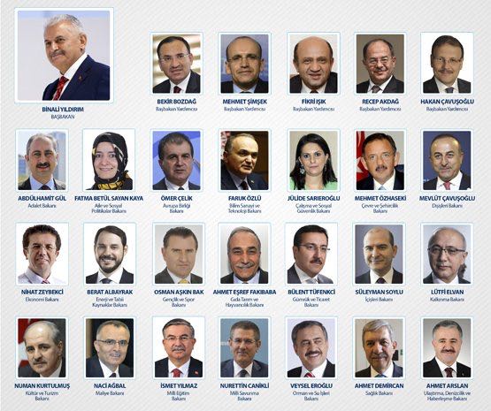 Yıldırım'ın açıklamasına göre revizyon sonrası yeni Bakanlar Kurulu şöyle şekillendi: