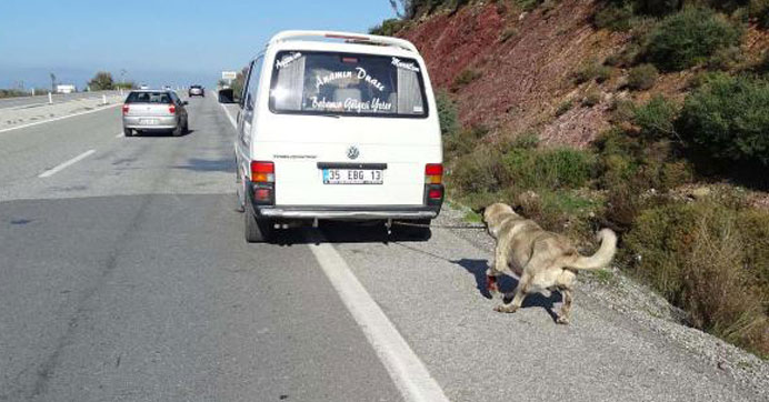 Hayvana işkence haberi İzmir'den geldi...İzmir'e bağlı Güzelbahçe'de büyükbaş hayvanlarını koruma amaçlı arkadaşının verdiği kangal çoban köpeğini, minibüse zincirleyip, patilerinin kanlar içinde kalmasına rağmen yolda sürükleyen, kadın avukatın tepkisiyle işkenceyi durduran Durmuş Akgün'e, ikinci ceza kesildi. Hayvanların Korunması Kanunu uyarınca 454 TL para cezasına çaptırılan Durmuş Akgün'e mahkeme 25 gün hapis cezası kararı verdi. Hapis cezası 5 taksite bölünerek 500 TL para cezasına çevirildi.