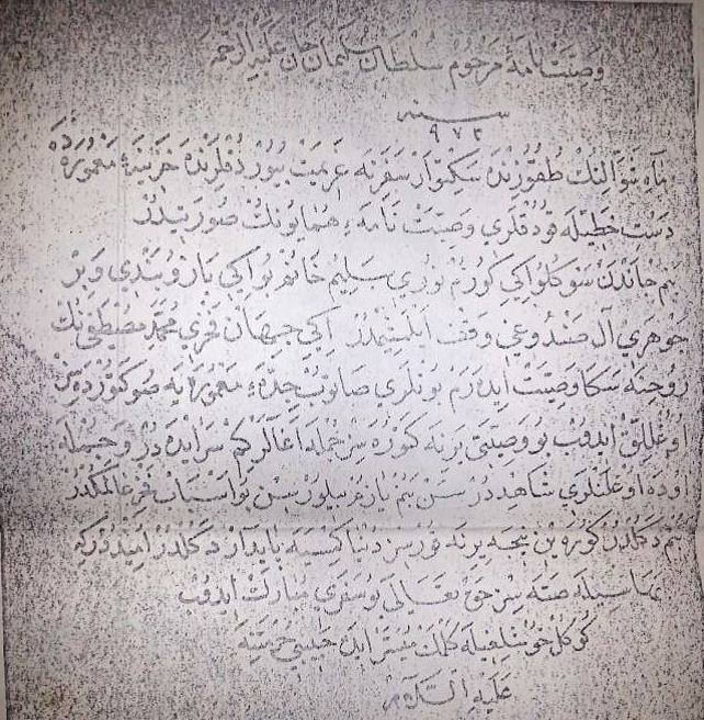 Mah-i Şevval’inün dokuzunda Zigetvar seferine azimet buyurduklarında, Hazine-i Ma’murede dest-i hattıyla kodukları Vasiyetnâme-i Humayun sûretidir: