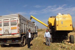 Ceylanpınarlı çiftçiler ikinci ürün olarak ektikleri mısırın hasadına başladı.