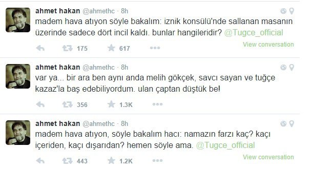 Türkiye İkisini Takip Etti Tuğçe Kazaz, Twitter hesabından Hürriyet yazarı Ahmet Hakan'a "dönek" deyince sosyal medyada olay çıktı.