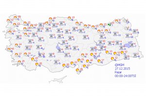 Meteoroloji Genel Müdürlüğünce yapılan son değerlendirmelere göre; ülkenin kuzey ve iç kesimlerinin parçalı yer yer çok bulutlu olması bekleniyor. Rize ve Hopa çevrelerinin yağmurlu, Artvin'in iç kesimlerinin karla karışık yağmur ve kar yağışlı, diğer yerlerin az bulutlu ve açık geçeceği tahmin ediliyor.