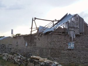 VAN Özalp ilçesine bağlı Yukarı Dönerdere köyünde yaşanan ve yaklaşık 1 dakika süren hortum felaketinde evlerin çatıları havalarda uçuştu.